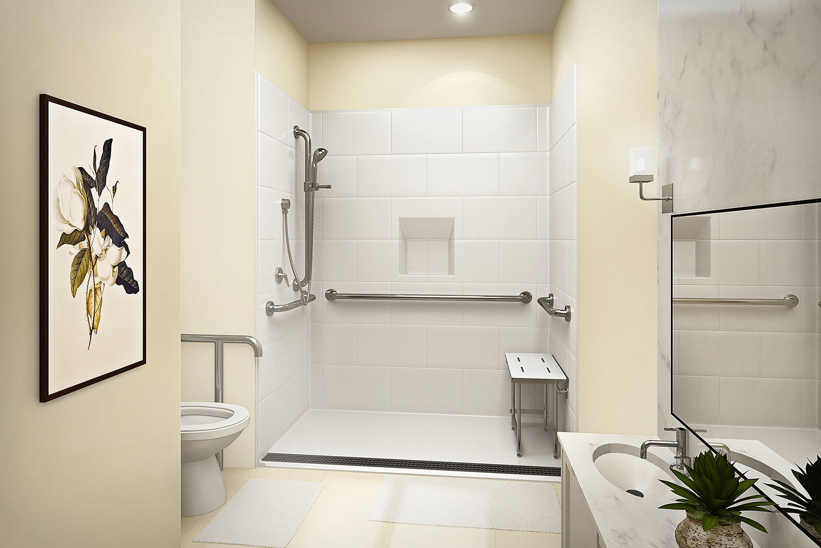 The Phoenix barrier-free shower aids in removing obstacles at the shower entrance for those with mobility issues when taking a shower. Walkers and wheelchairs can easily be brought into the shower, thanks to the 3/4″ threshold. Additionally, it has CSA certification!